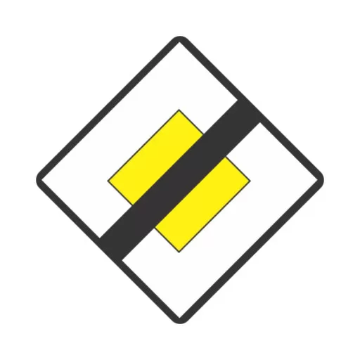 Indicatorul anunță că se termină prioritatea și că în următoarea intersecție se va aplica regula priorității de dreapta.