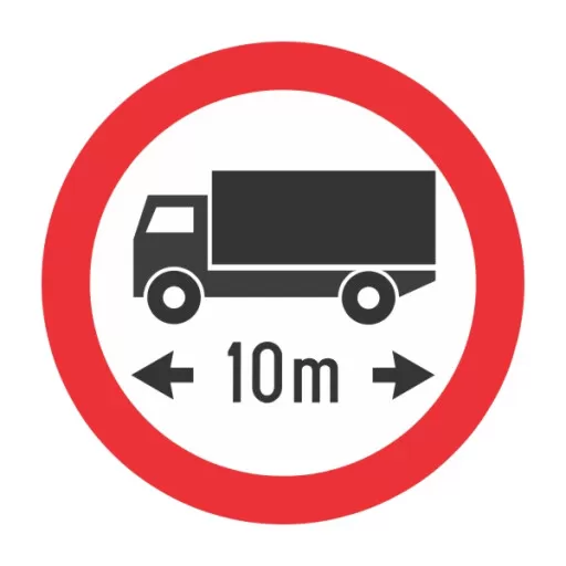 Indicatorul interzice accesul autovehiculelor sau al ansamblurilor de vehicule (cu remorcă) a căror lungime depășește 10 metri.