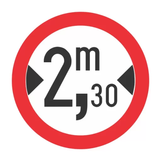 Indicatorul interzice accesul vehiculelor a căror lățime (inclusiv încărcătura) depășește 2,3 metri. Valoarea este cu 0,8 m mai mică decât lățimea liberă a drumului.