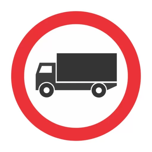 Indicatorul interzice accesul vehiculelor de marfă. Poate fi însoțit de un panou cu masa maximă autorizată, caz în care vehiculele sub acea masă pot circula.
