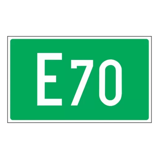 Indicatorul confirmă că drumul este deschis traficului internațional (face parte din rețeaua de drumuri E).