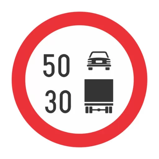 Indicatorul impune limite de viteză diferite pentru diferite categorii de autovehicule (de exemplu, autoturisme vs. camioane).