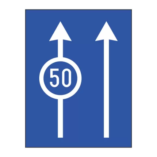 Indicatorul impune o viteză minimă pentru o anumită bandă. Conducătorii trebuie să se încadreze pe banda corespunzătoare vitezei cu care circulă.