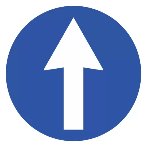 Indicatorul obligă să circuli înainte, în intersecția respectivă. Poate fi montat deasupra unei benzi.